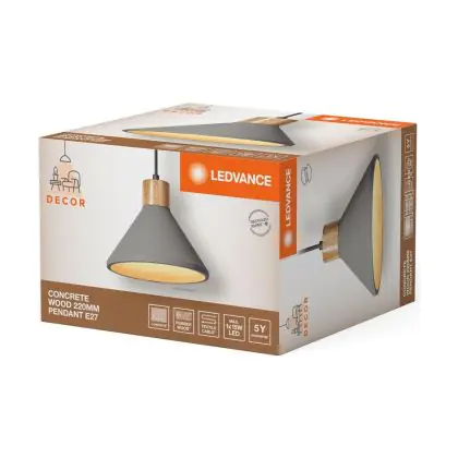Ledvance Decor Concrete/Steel/Wood Pendant 220 Dark Grey | Suitable for E27