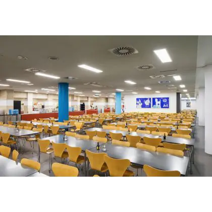 The Unified Glare Rating (UGR) indicates the extent to which the light of a product is blinding. This value differs per application and must comply with European standards (EN 12464-1). A low UGR value stands for a low glare factor. For offices and schools lighting with a UGR<19 value is mandatory and for public areas UGR<22.