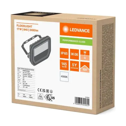 Ledvance LED Floodlight Aluminium Black 17W 2400lm 100D - 840 Cool White | IP66 - Symmetrical