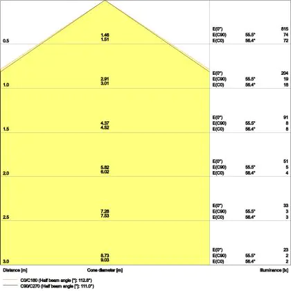 The colour code is a combination of colour rendering (CRI) and light colour (Kelvin). The first number indicates the colour rendering (1 = very poor colour rendering, 9 = maximum colour fastness). The second and third number contains the light colour. Example: the colour code 830 consists of good colour rendering (8) and warm white light (3000K). |