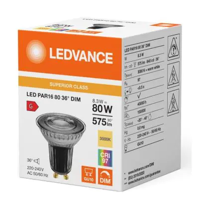 Ledvance LED PAR16 GU10 Reflector 8.3W 575lm 36D - 930 Warm White | Best Colour Rendering - Dimmable - Replaces 80W