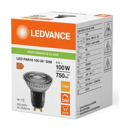 Ledvance LED PAR16 GU10 Reflector 8W 750lm 36D - 827 Extra Warm White | Dimmable Replaces 100W