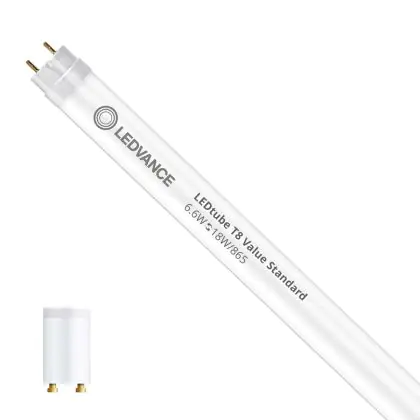 Ledvance LED Tube T8 Value (EM/Mains) Standard Output 6.6W 800lm - 865 Daylight | 60cm - Replaces 18W