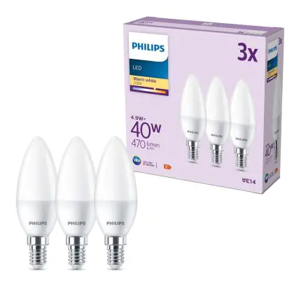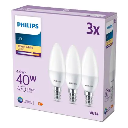 | Manufacturer Name | Box 3 stuks - Philips LED Kaarslamp Mat - 40 W - E14 - Warmwit licht | |