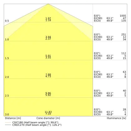 The colour code is a combination of colour rendering (CRI) and light colour (Kelvin). The first number indicates the colour rendering (1 = very poor colour rendering, 9 = maximum colour fastness). The second and third number contains the light colour. Example: the colour code 830 consists of good colour rendering (8) and warm white light (3000K). |
