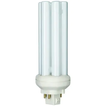 The Philips PL-T TOP 4P lamps are 4 pin socket fluorescent lamps that are very efficient for long run times. They are more efficient than 4P PL-T standard bulbs and their performance is optimized over wide temperature ranges. Philips PL-T Xtra 32W 840 4P measure 139 cm and have a GX24q-3 socket type, which corresponds to a socket with 4 pins.