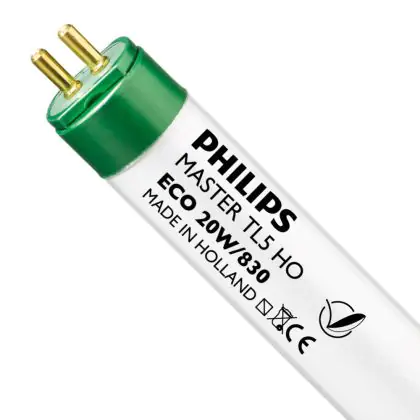 Philips TL5 High Output Eco are fluorescent tubes of 16 mm in diameter and have a G13 base. These lamps are highly efficient and economical. They have a low energy use for a very important light output. These lamps must be used with an electronic ballast.